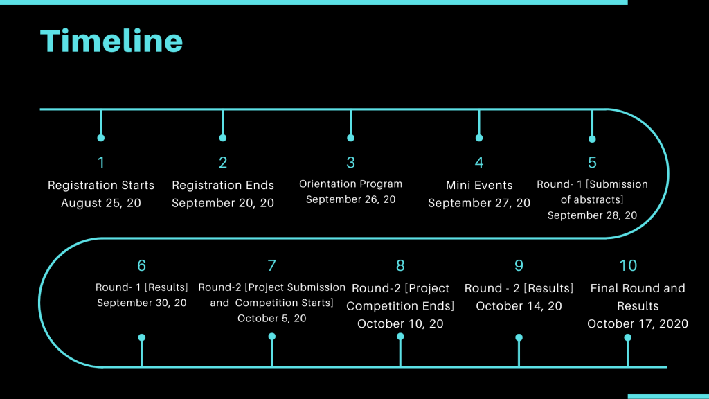 You will get an exhilarating chance to showcase your versatility in finding approach to solve real life problem statements. Winners (Top 3 teams) will get the prices worth 500 US Dollars and top 5 selected teams will get the gift cards worth 180 US Dollars.